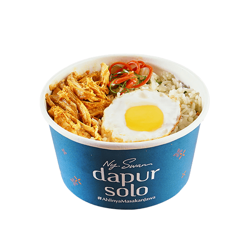 Paket menu praktis disajikan dengan nasi putih, ayam suwir pedas, telor ceplok, dan irisan daun bawang