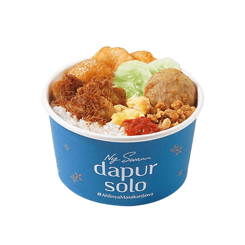 Paket menu praktis disajikan dengan nasi uduk, ayam filet serundeng, perkedel, orek tempe, telor dadar iris, kering kentang, timun dan sambal