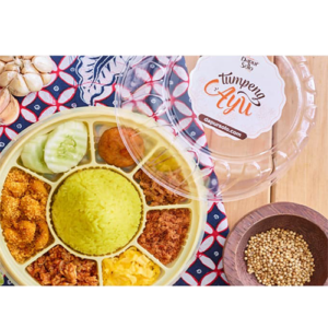 Tumpeng nasi kuning dengan varian lauk seperti ayam goreng, sambal goreng kentang, tempe bacem, telur dadar tipis, perkedel, sayur urapan, lalapan, sambal, cocok untuk 30 orang.Tambah ke keranjang